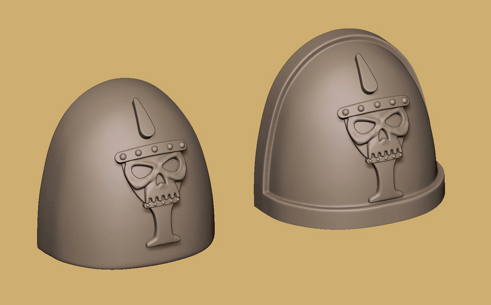 These are armored Rogue Trader style Pauldrons for use with various power armored models for tabletop wargames.