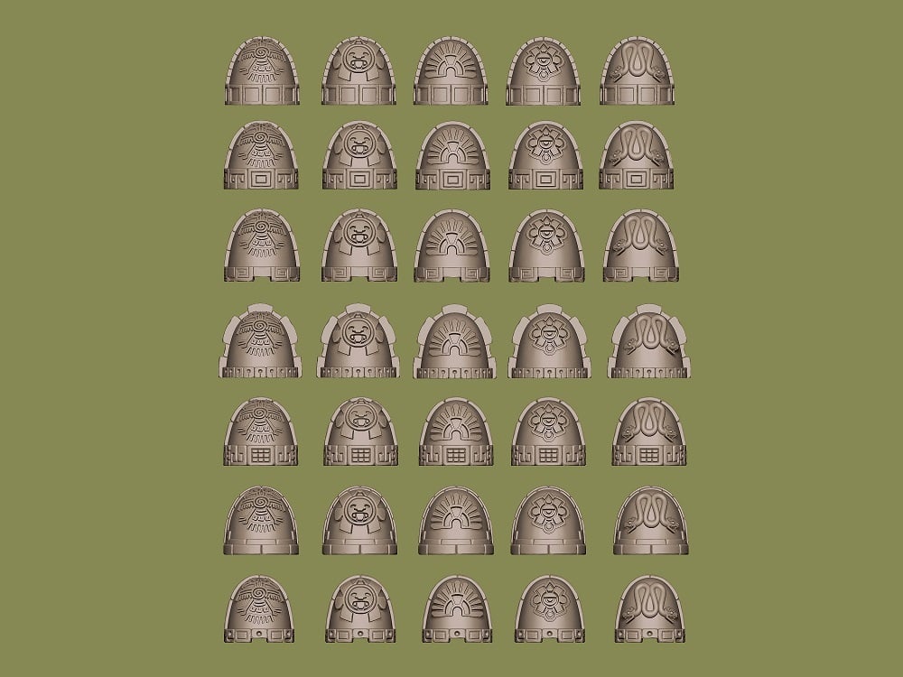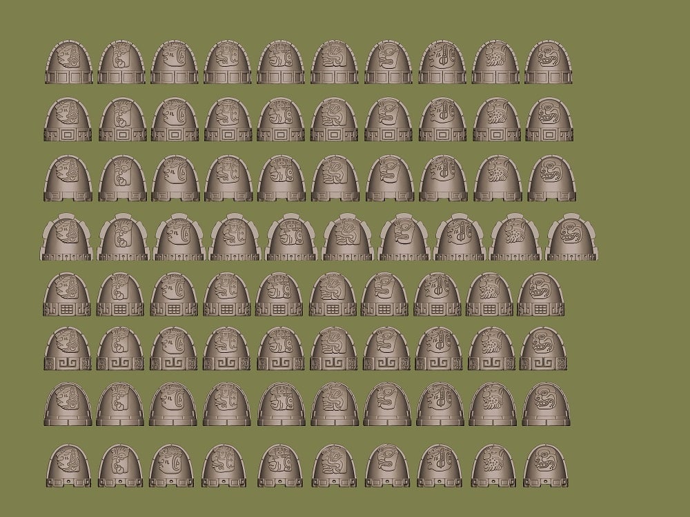 80 Pauldrons - - There are 8 different pauldrons, each style has Maya glyphs for the numbers 1-10 so you can use them as squad numbers.