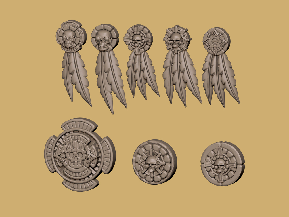 These are a set of Mesoamerican-themed bits for use with the Redemptor Dreadnought model.
