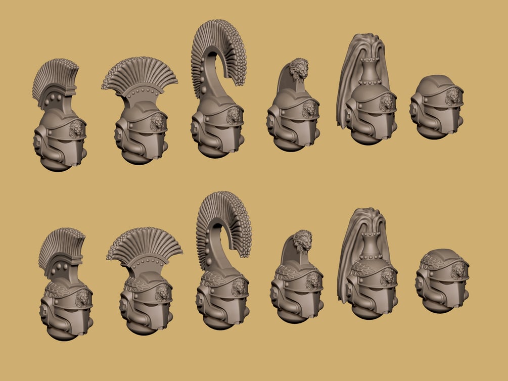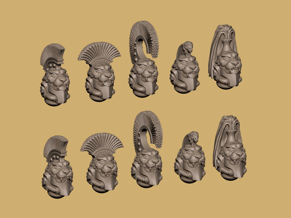 These are a set of60 Lion themed components for use with various power armored models for tabletop wargames.